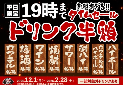 | 営業時間 | 【月~木】 17時~23時 【金・祝前】 17時~24時 【土日祝】 11時30分~24時 ・22時から翌朝5時のご注文には、深夜料金として10%加算させていただきます。 |