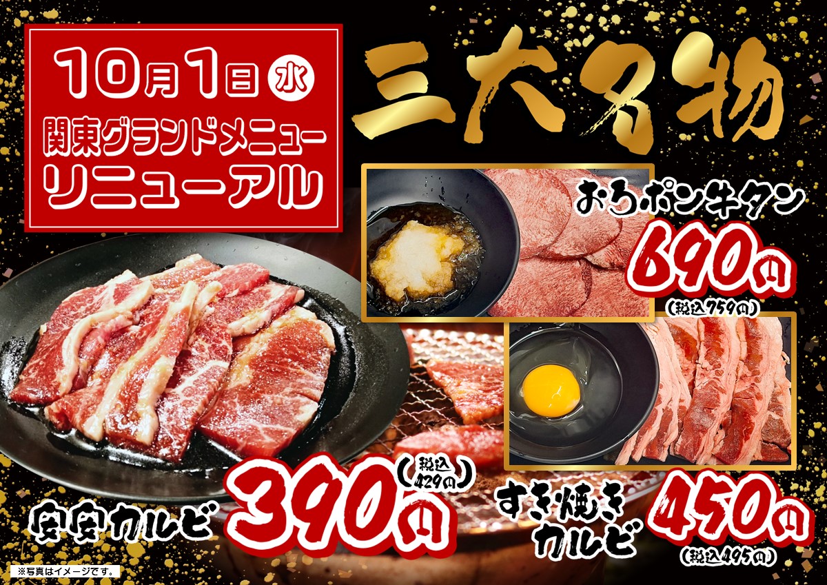 おろポン牛タン、安安カルビ、すき焼きカルビの新三大名物メニューに加え、