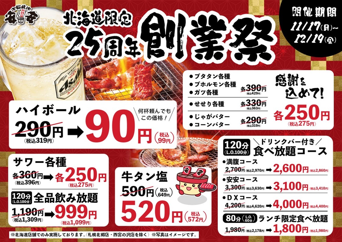 北海道エリア限定で「七輪焼肉 安安 25周年 創業祭」を開催!