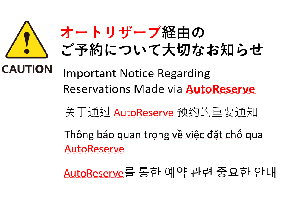 Currently, some external services have posted our information without permission and display that reservations can be made through AutoReserve. However, we do not accept any reservations made via AutoReserve.