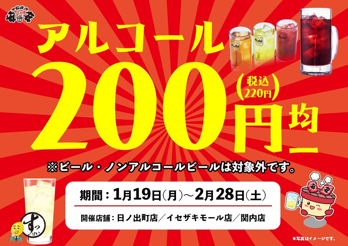 期間限定で、ドリンクを思う存分楽しめるお得なアルコールセールを開催します。